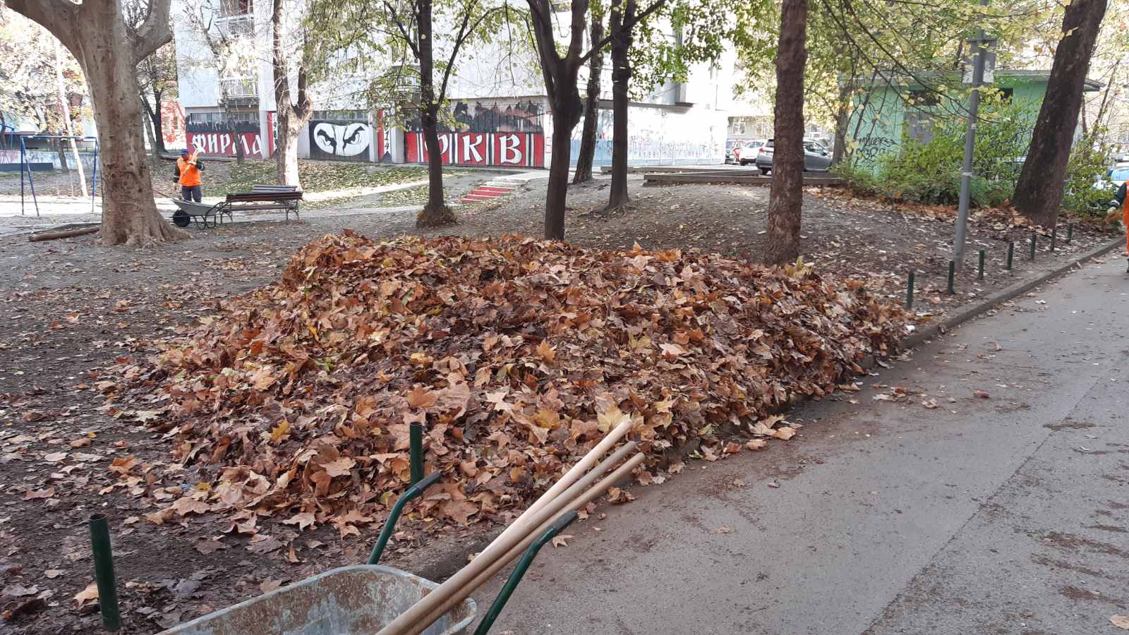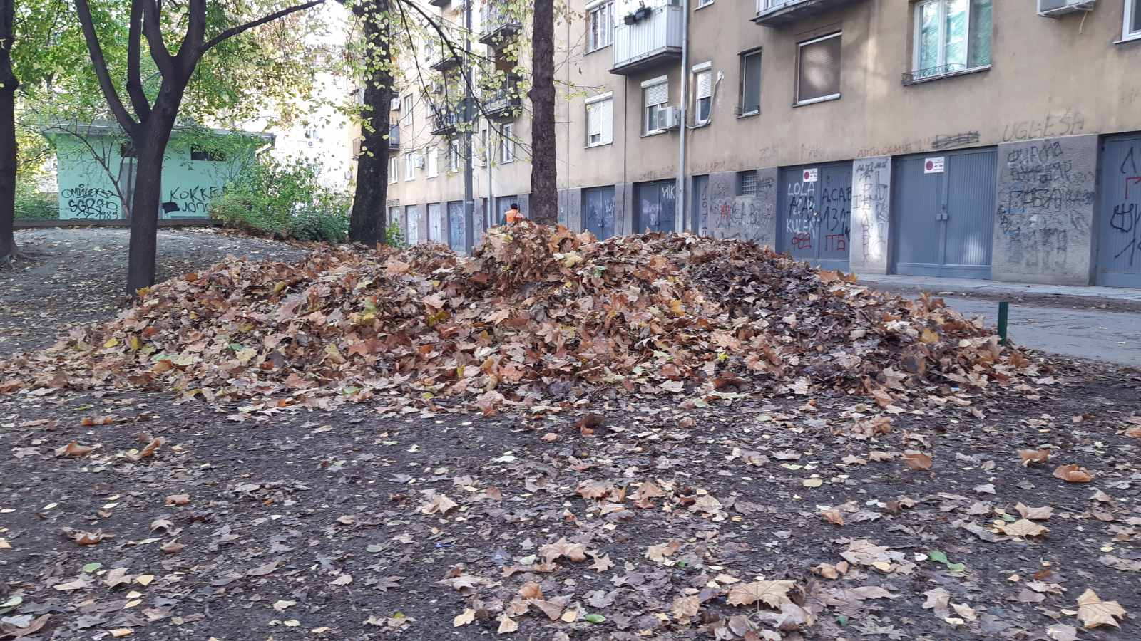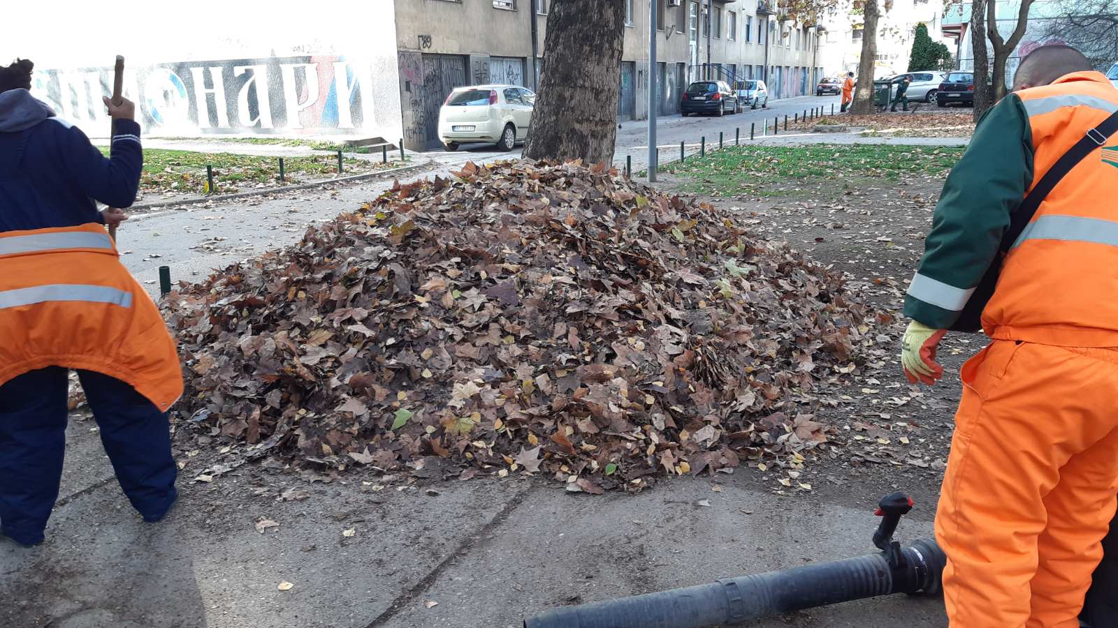 Екипе Службе јавне хигијене ЈКП “Чистоћа” данас су, између осталог, уклањале лишће и у Улици Милана Симовића, у пролазу између Алексе Шантића и Толстојеве: